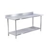 -Các thiết bị inox chiếm một phần lớn trong các thiết bị nhà bếp như bàn inox, chậu rửa inox, giá kệ inox, tủ inox. Bàn inox có gáy với chất liệu inox 304, độ dày 1 – 1 ly2, có độ bền cao & dễ dàng tẩy rửa vệ sinh, có thể ứng dụng để làm bàn sơ chế, bàn trung gian, bàn soạn chia. Với gáy phía sau giúp dễ dàng thao tác với thực phẩm mà không bị rơi
