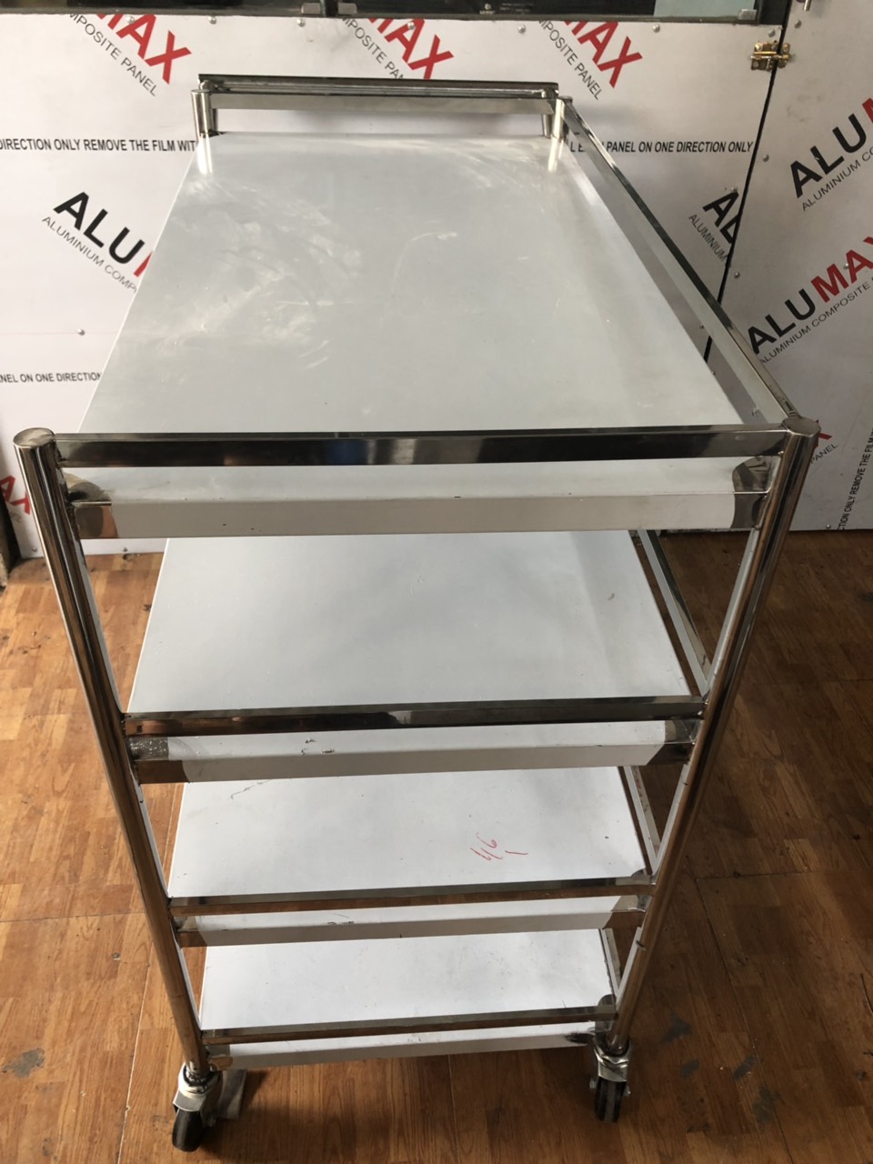 Chất liệu Xe đẩy 3 tầng: Inox trắng.